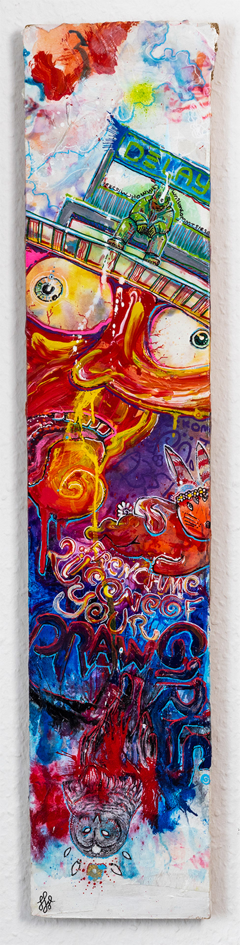 Rumpelstilzchen im Wurstgeschäft – 2024, Acryl auf Leinwand, Keilrahmen, 78 x 29 cm