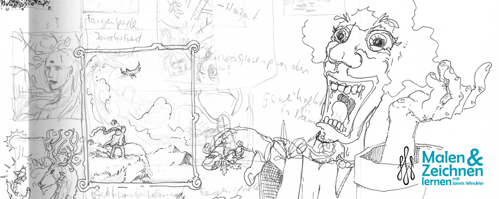 Beispiele für Inhalte: Doodlen, Frankenstein-Figuren, Zeichnen nach Musik, Beidhändiges Zeichnen, Oneliner und mehr!